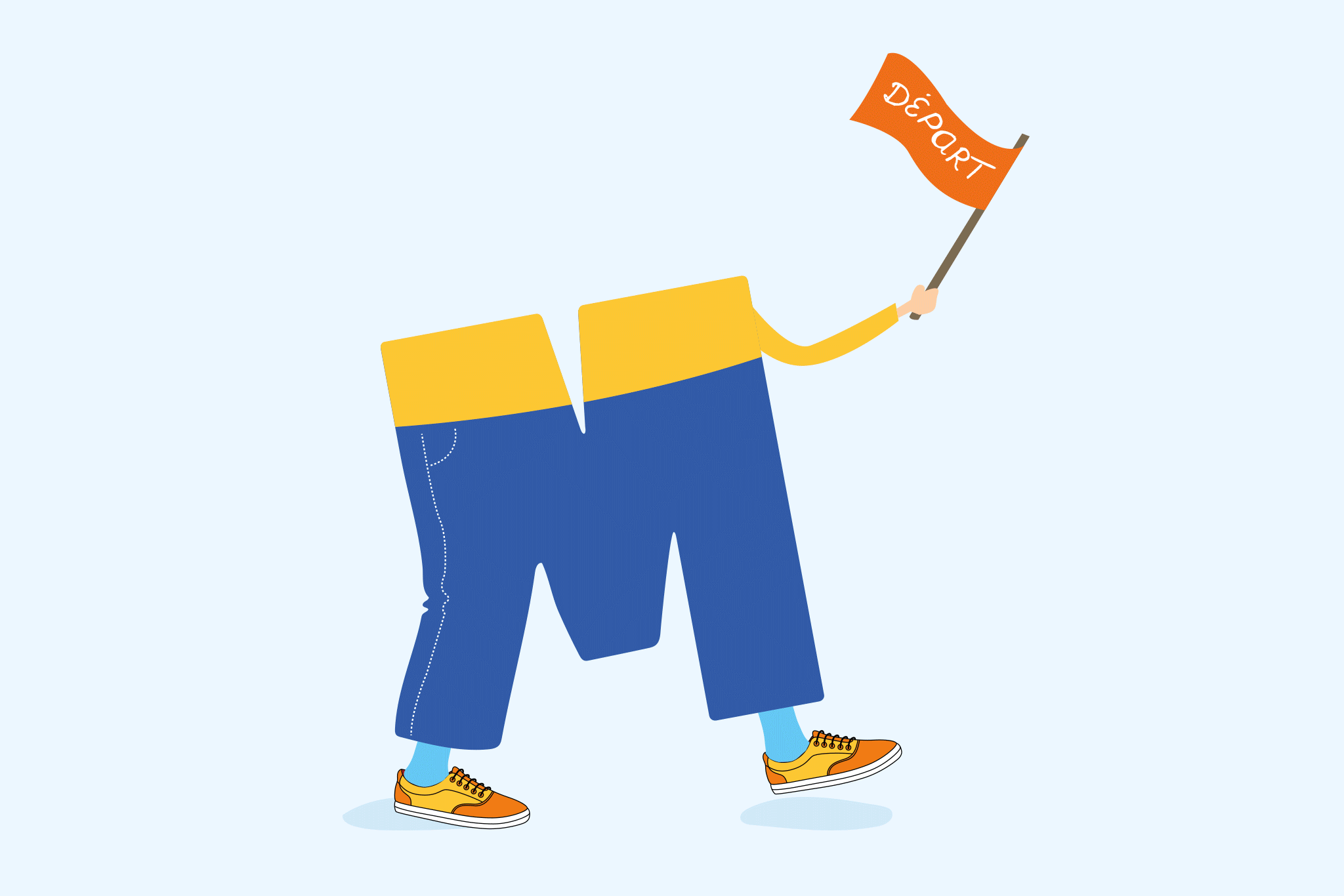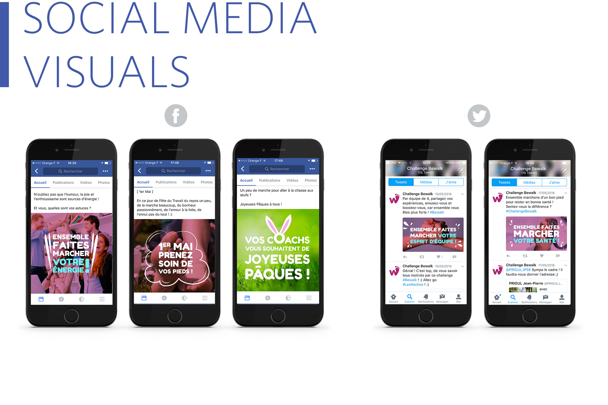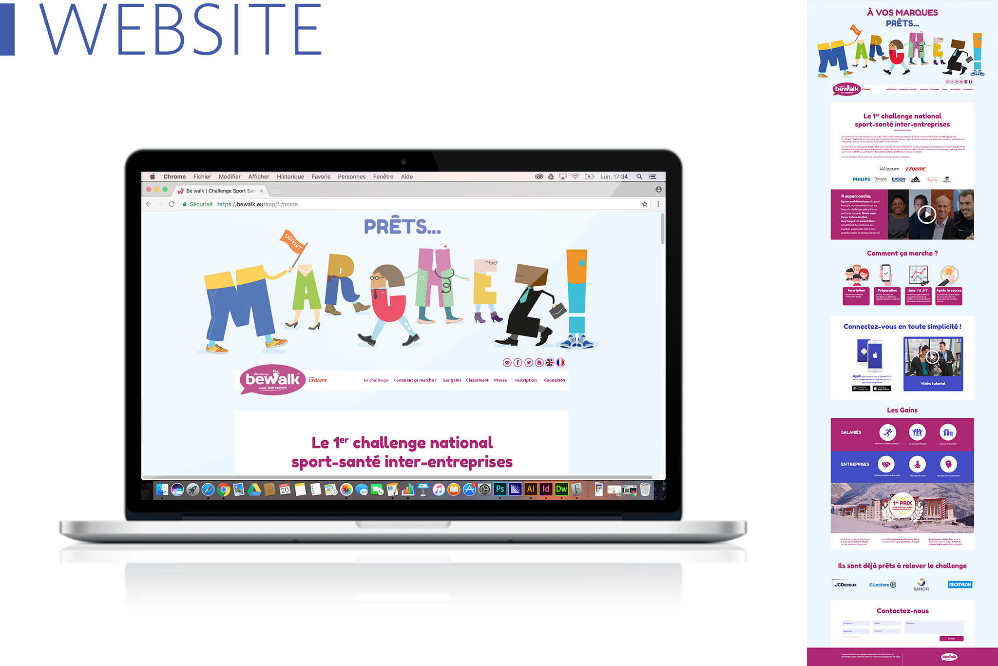 To represent this project, I decided to design something funny and light for the key visual; targeting the human resource directors AND the employees who wanted to introduce activities in their firm combining team cohesion and health. The advertisement can be translated as follows: "On your marks, ready... walk!"