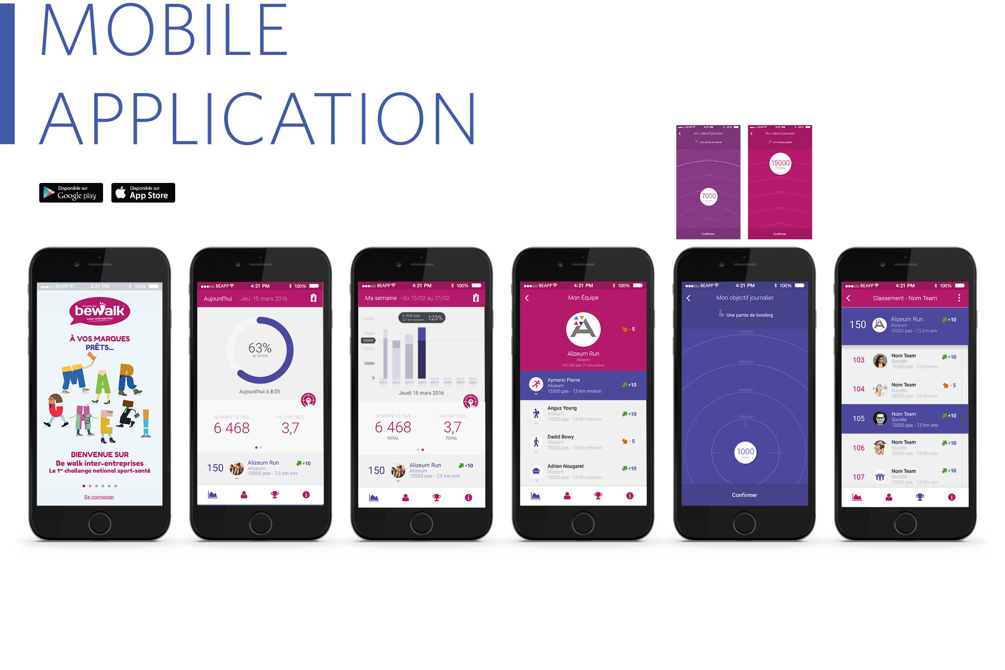 Alizeum and L'EQUIPE collaborated to create a one-week virtual walking challenge for firms. Why? People being more and more obliged to sit in front of their computer all day, the purpose was to motivate them to move more during their working hours. Indeed, the ONF stipulate that WALKING 10 000 steps per day will help keep you in good shape. The concept: after creating a team of four persons in your firm, you must take as many steps as possible during the challenge. A mobile application program was created specifically to register your results creating a kind of virtual challenge.