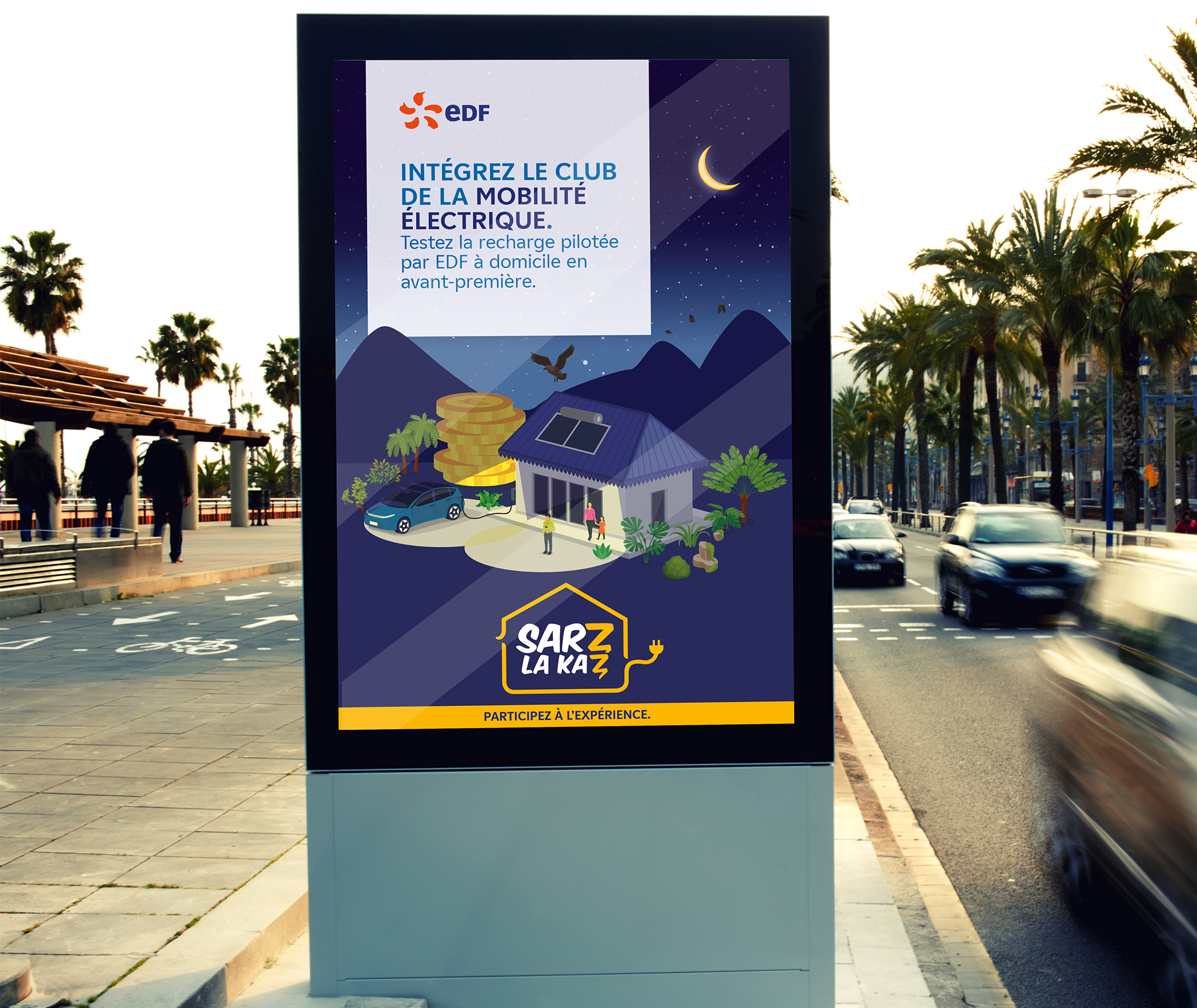 EDF is a french electricity company. On Reunion Island they wanted to experiment a new electric system to recharge "the house" during the night. They needed people to be part of the experience. They asked us for a specific identity and an advertising campaign.