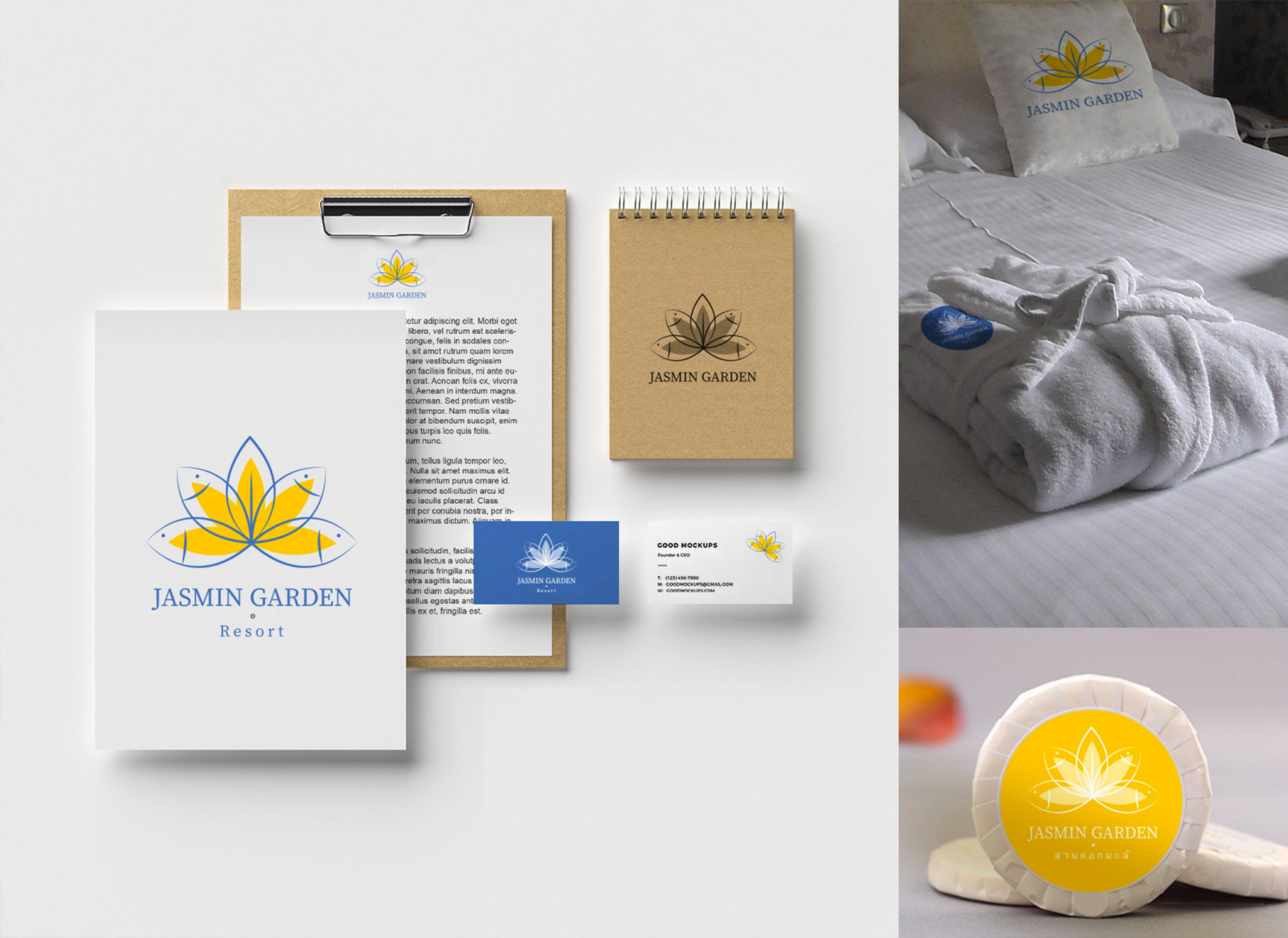 Création de l'identité visuelle d'un hôtel de luxe dans le sud-est de la Thaïlande. Mon client a construit 4 bungalows et un restaurant. Je les ai accompagné sur toute la sphère communication, du logotype au site web en passant par leur présence sur google et booking ainsi que les réseaux sociaux. Mots clés : jasmin, zen, authentiqaue, mer, poisson, qualité, paradis, jardin.