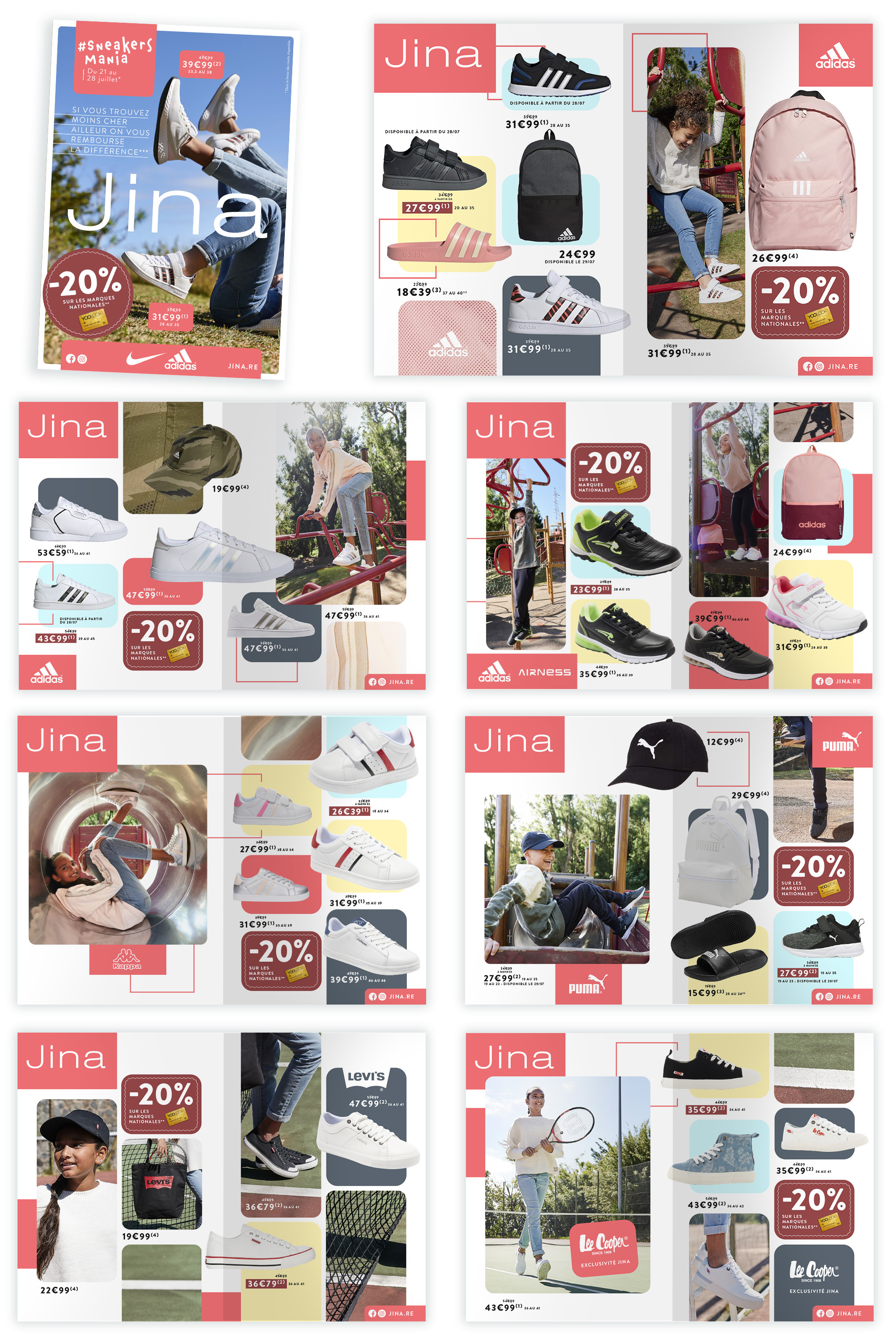 Jina est une marque de chaussure sur l'île de la Réunion. J'ai réalisé pour eux plusieurs magazines, ici vous pouvez découvrir celui de la rentrée des classes.